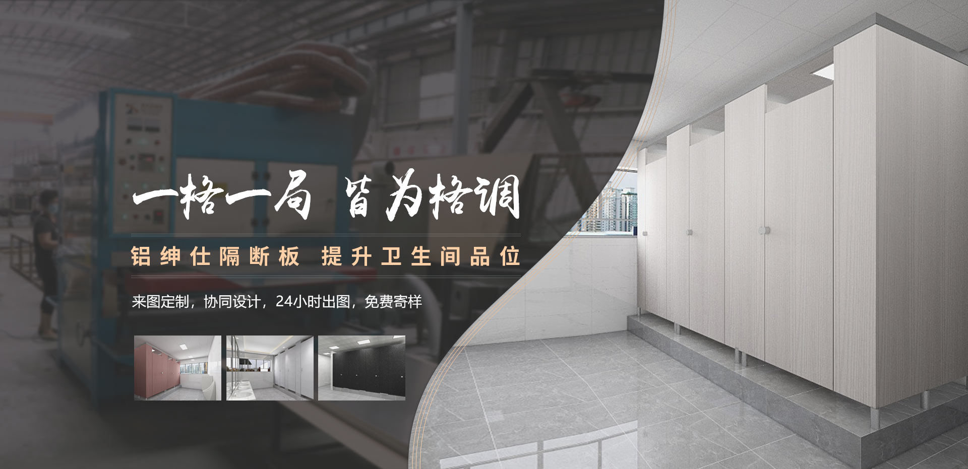 18年致力于衛(wèi)生間隔斷的研發(fā)生產(chǎn),廠房占地15000m2,擁有鋁材、板材2條完善的自動化生產(chǎn)線,鋁材擠壓機、全自動淋膠機等進口設備;